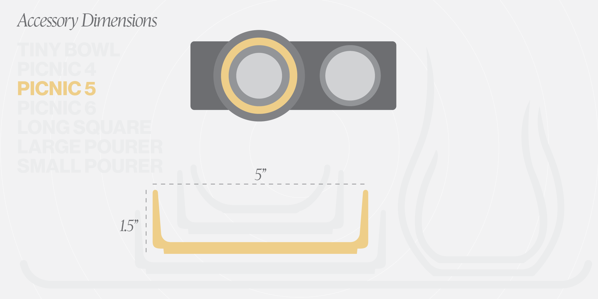 • Dimensions: 5” D X 1.5”H